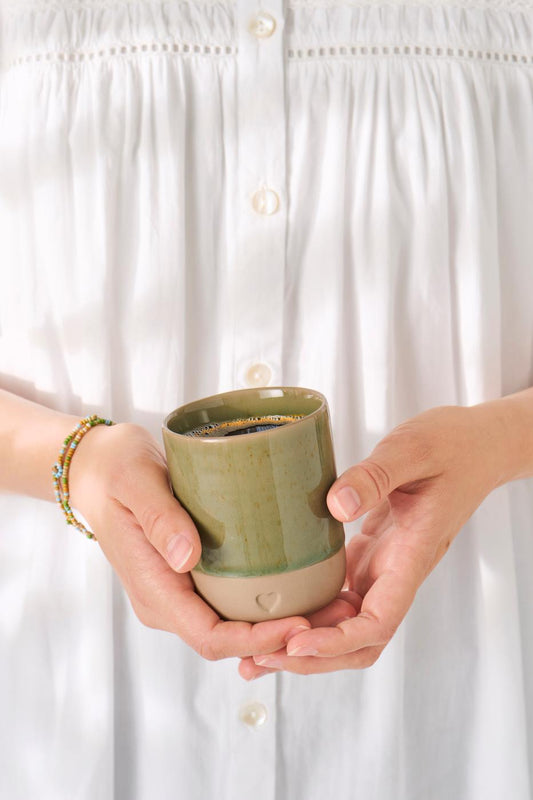 Oliven grøn keramik krus uden hank-Ib Laursen