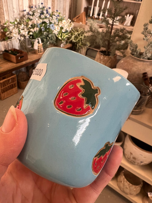 Håndlavet keramikkrus med jordbær - Handmade by Victoria Juul