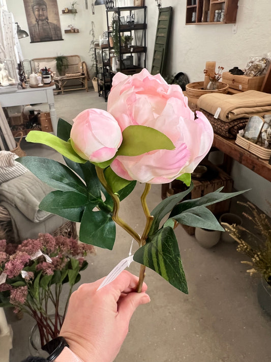 Kunstig pæon stilk i rosa - 46 cm