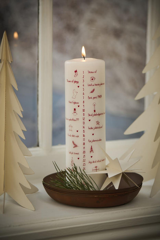 Kalenderlys med røde tal og tekst - Ib Laursen