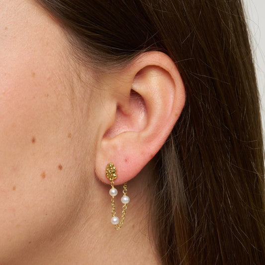 Kæde øreringe med perle vedhæng - Pure by Nat
