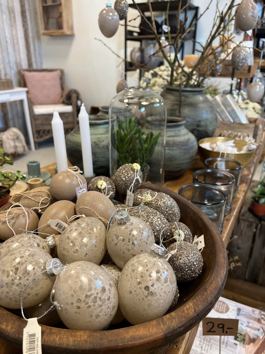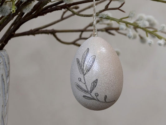 Påskeæg med blad og glimmer - Chic Antique
