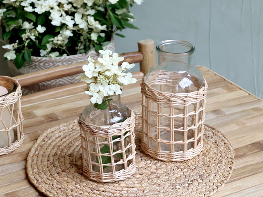 Vi tænker altid i grupper når vi sammensætter flere vaser sammen i forskellige højder og materialer for at skabe et interessant og afbalanceret look. Derudover er at matche farverne altafgørende. Vælg derfor vaser, der komplementerer farveskemaet i dit hjem. Det kan være tone-i-tone eller kontrastfarver for mere dynamik. Et godt fif er også at eksperimentér med indholdet. Prøv ikke kun at anvende blomster. Grene, tørrede blomster, fjer eller endda dekorative lys kan give et spændende udtryk.