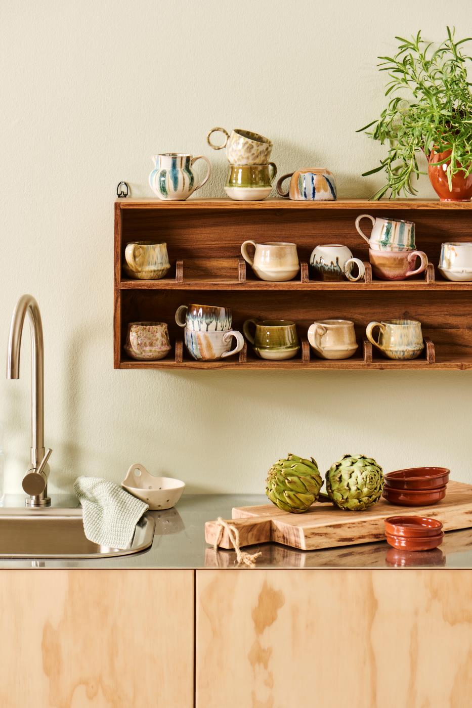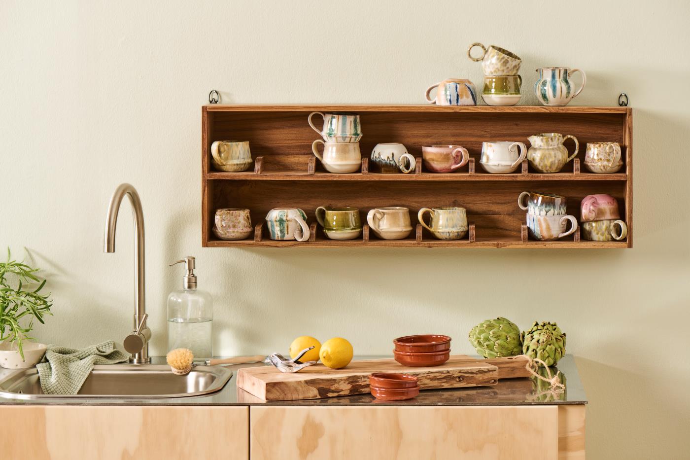 Træhylde til væggen til opbevaring af små krukker eller til dine kaffekrus. Hylden er lavet af genbrugstræ, hvilke gør at hylden er helt unik i i farve og overfalde, og der er ikke to der er helt ens. Der er kroge bag på hylde så den er nem at hænge op, eller den kan stå op af væggen, fyldt med dine unikke kaffekopper, eller andet pynt. Er du til en væghylde i rustik og vintage træ med små rum, er denne reol lige noget for dig.