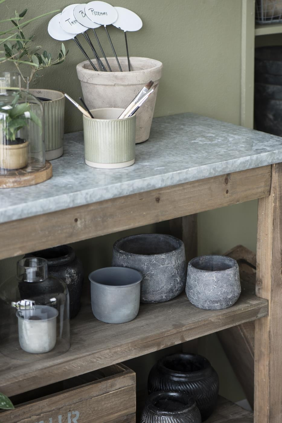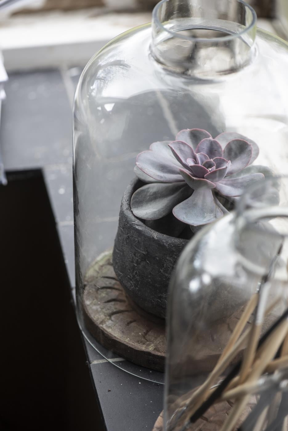 Akropolis skjuler lavet i grå cement. Lille krukke som er perfekt til små stueplanter og sukkulenter. Urtepotteskjuler med en flot rustikt look.