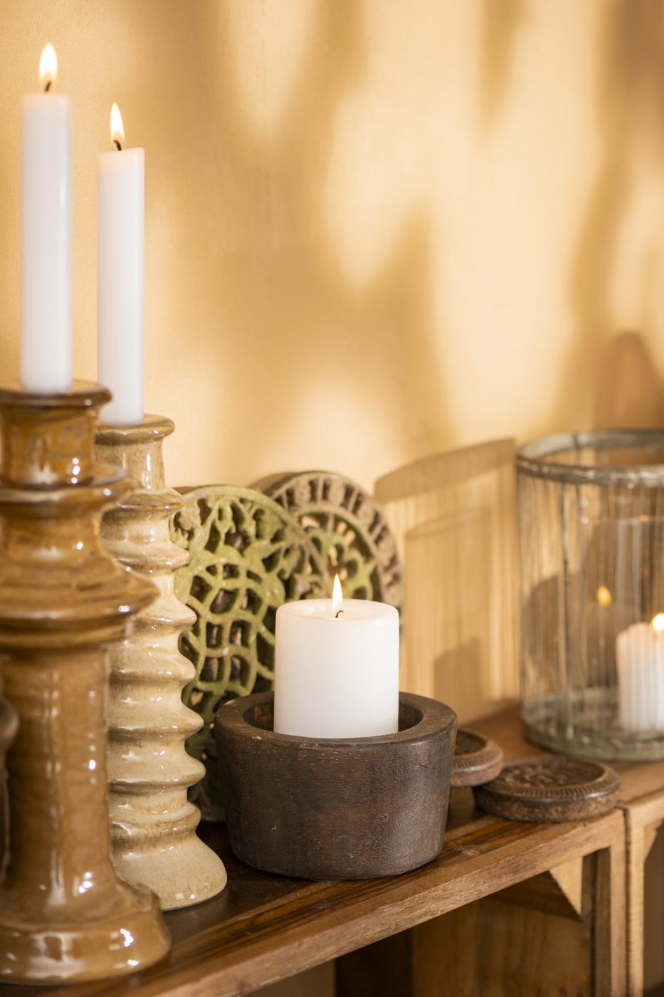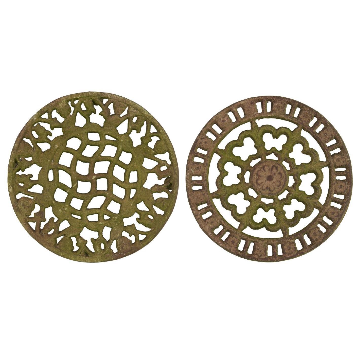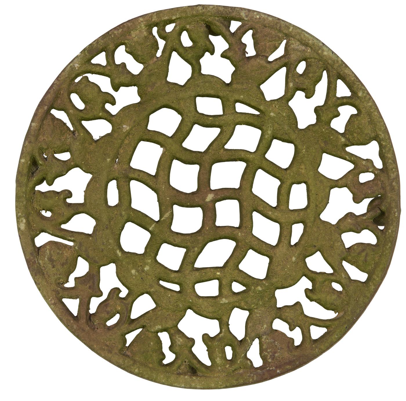 Rund bordskåner i jern med mønster, i farven brun med mosgrøn. Findes i to varianter.