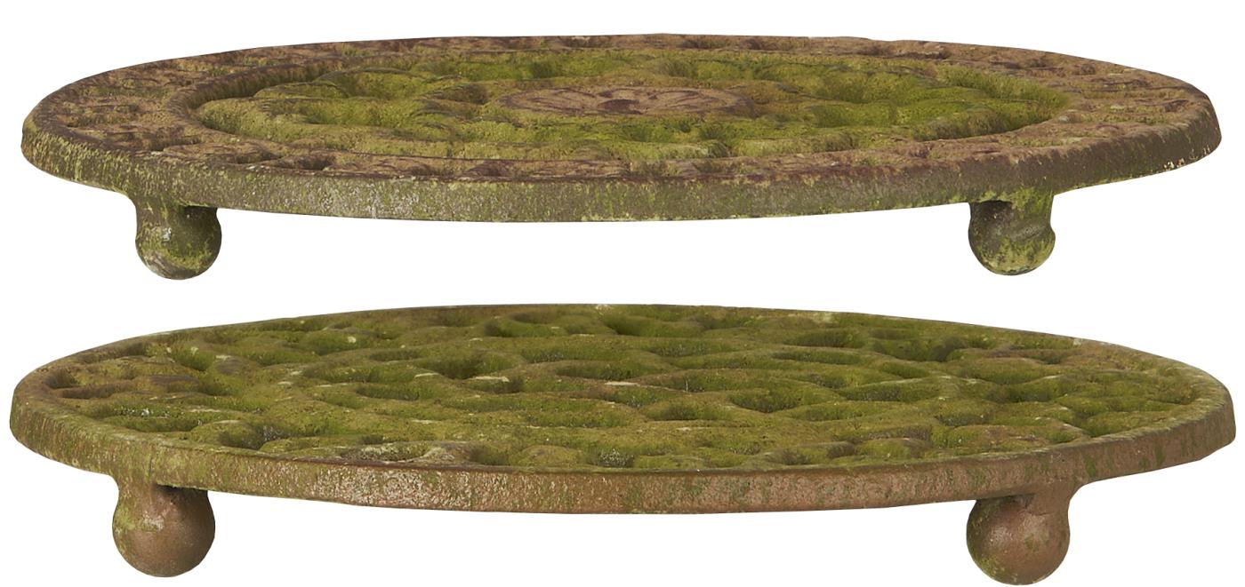 Denne bordskåner, fra Ib Laursen, af jern er prydet med filigranmønstre og en mosgrøn finish - og er forsynet med små runde fødder, der giver den en let hævet position. Anvend den som et dekorativt element i indretningen - og placér eksempelvis en potte eller en glasklokke ovenpå. Der kan forekomme farvevariationer