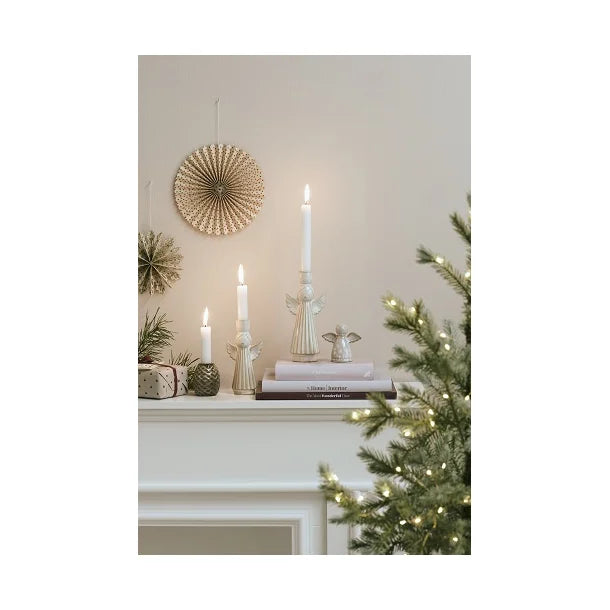 Fin og dekorativ lille engel i stentøj fra Ib Laursen. Englen er hvid,/råhvid har en enkelt og smukt udtryk.