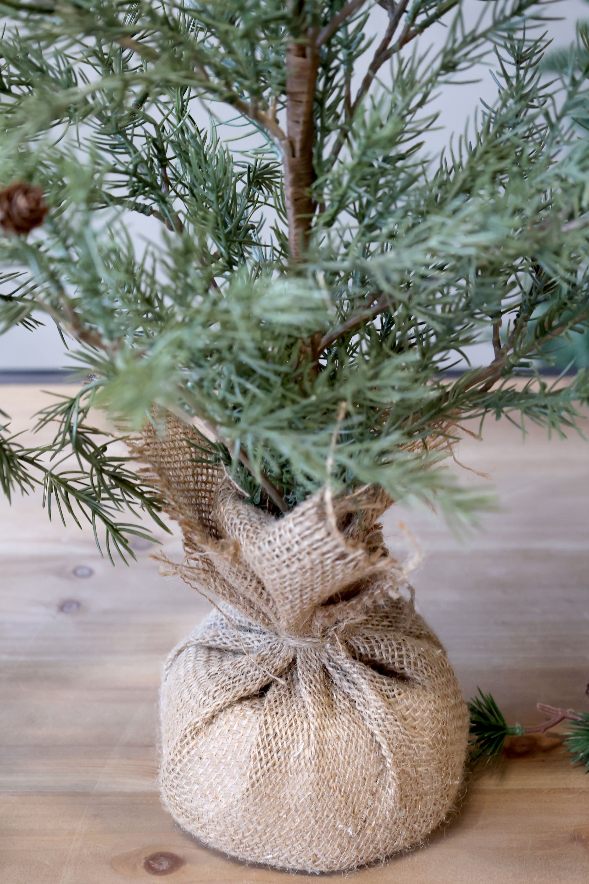 Grantræ med fra Chic Antique med kogler og jute bund. Materiale: PE og jute.
