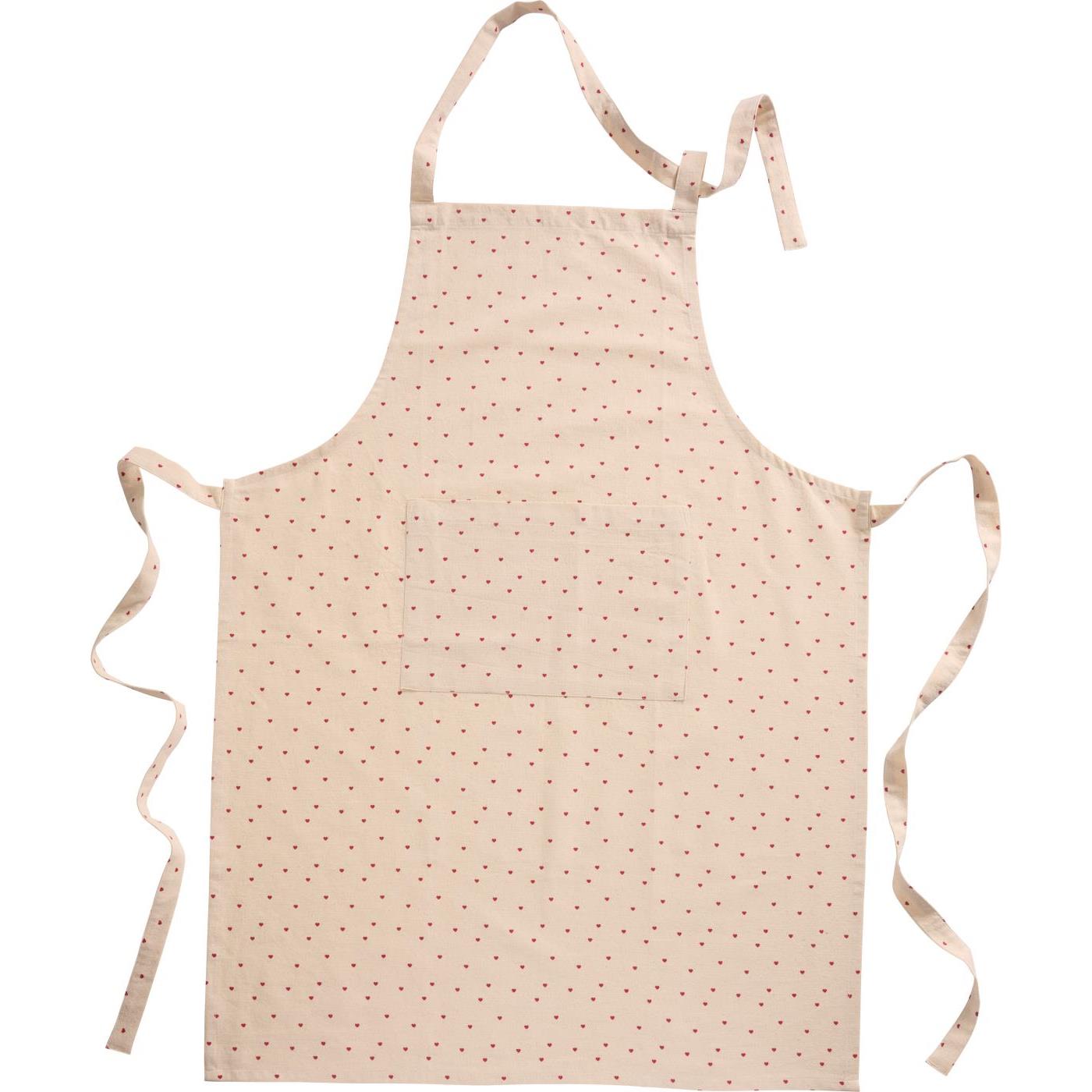 Forklæde i 100% bomuld med små røde hjerter og lomme og bindebånd fra Ib Laursen. Forklædet findes i to størrelser. Det lille til børn, og det store til de voksne. Fin når julens småkager skal bages, julefrokosten eller julemiddagen tilberedes, og det er også rigtig fint og dekorativt at have til at hænge fremme hele julen. Der anbefales vask ved 40 grader.