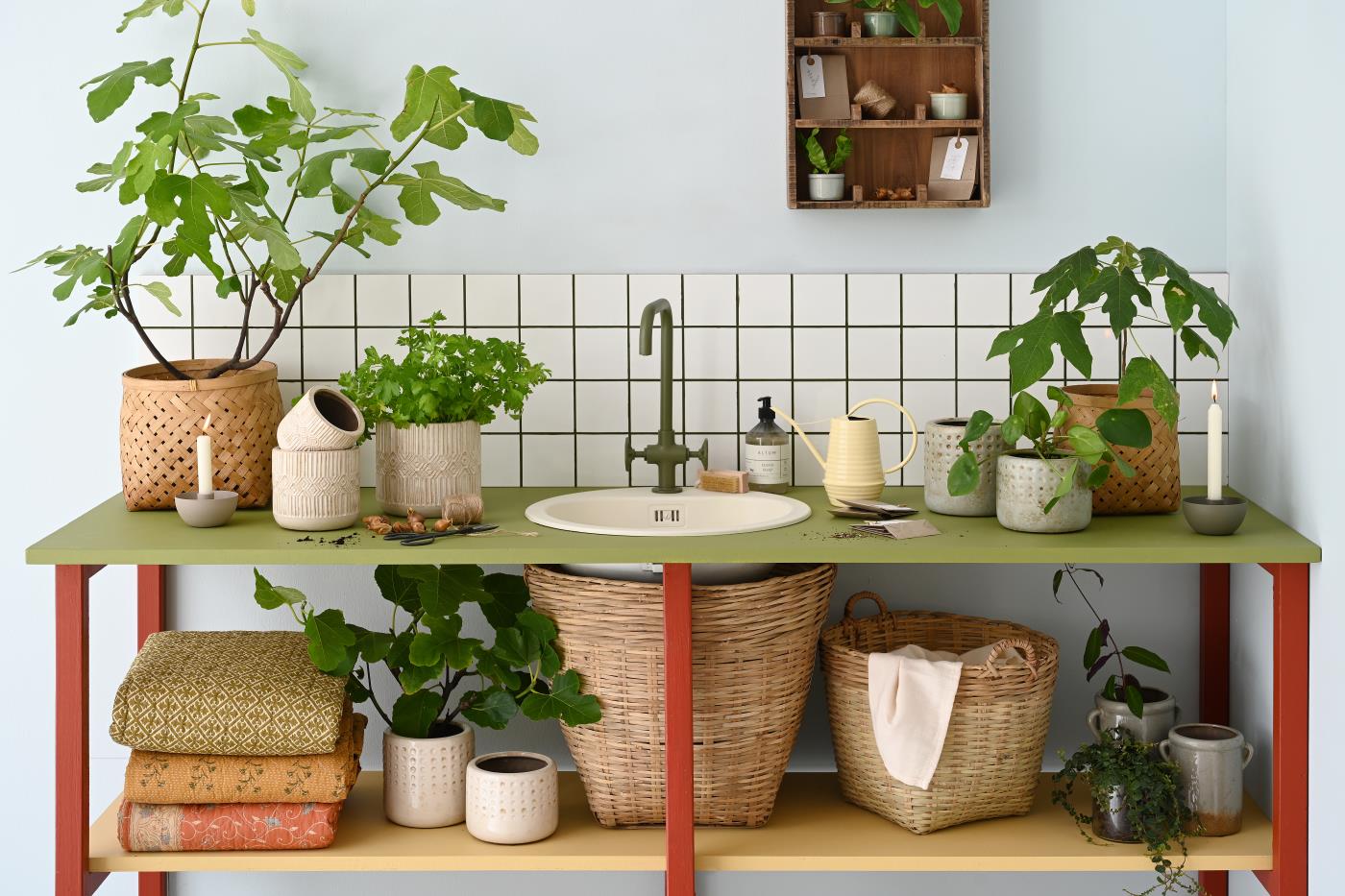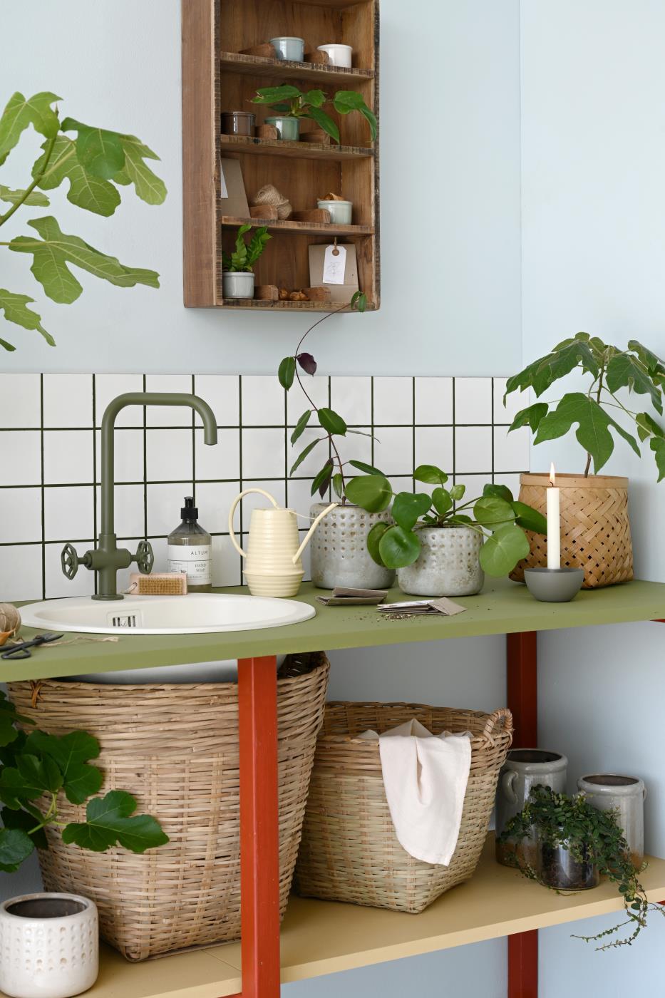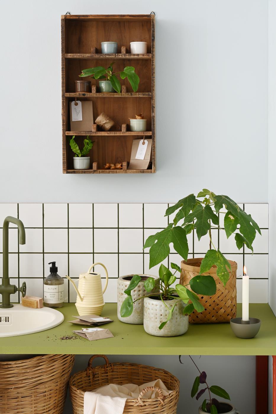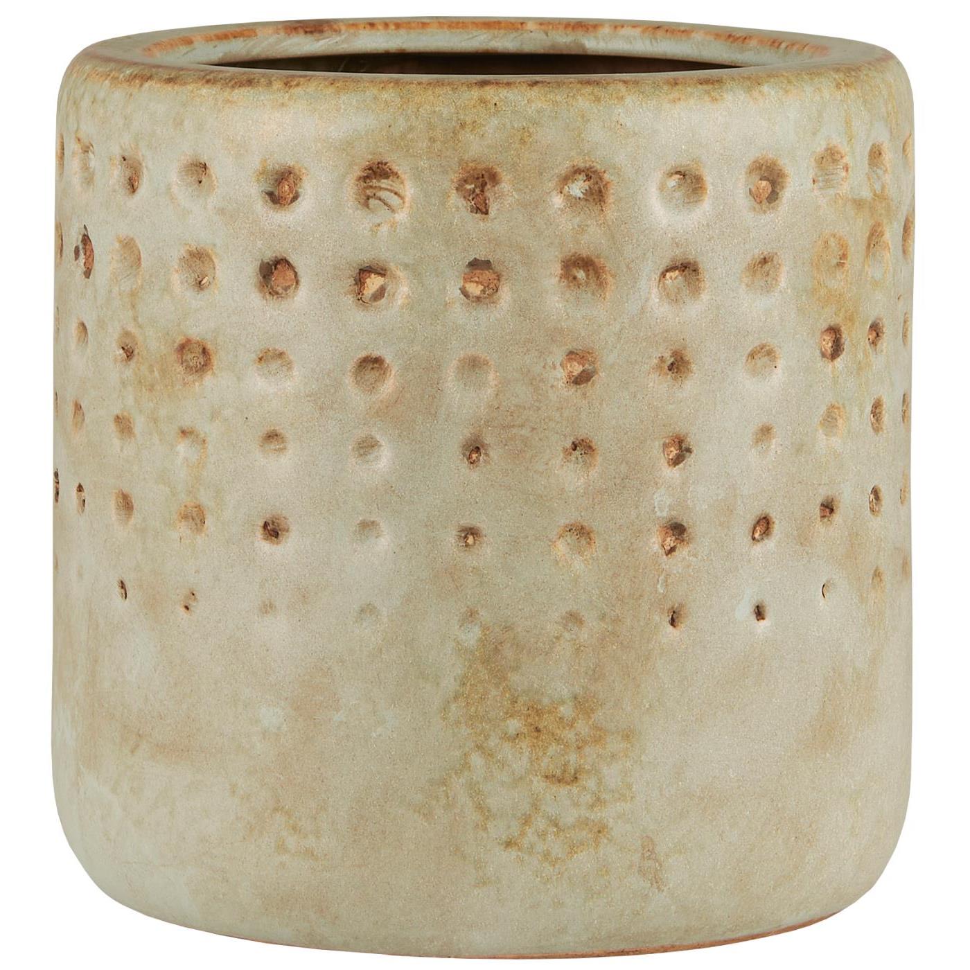 Frida skjuler i keramik fra Ib Laursen i en flot svag støvgrøn farve med mat glasur, og med hulmønster øverst.