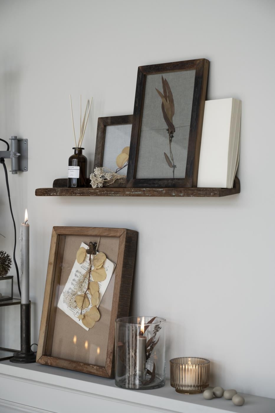 Du kender det sikkert godt… Det er sjovt at lege med indretningen - og udtrykket i dit hjem. Men ikke så sjovt at borer - og reparerer væggen, hver gang, man får en ny idé. Gallerihylden er lavet af genbrugstræ med masser af patina - og gør det muligt for dig nemt at skifte lidt ud i det, du kigger på.