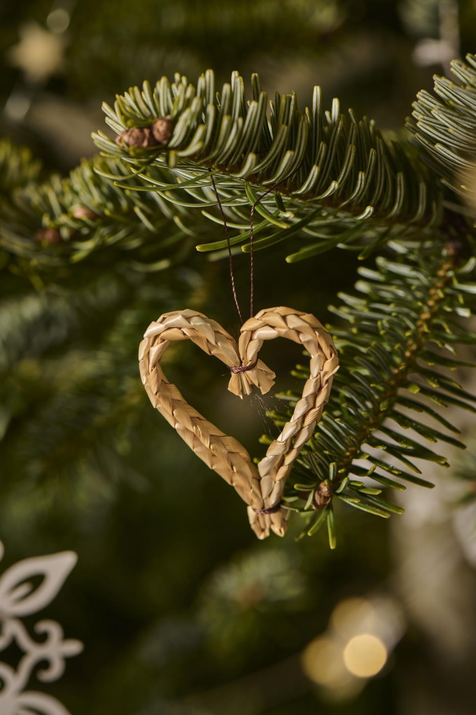 Smukt flettet hjerte i hamp fra Ib Laursen, i deres serie af nostalgisk julepynt. Hjertet findes med 2 forskelligere farver tråd, rød eller brun. Rigtig fint hjerte som kan bruges til at hænge på juletræet, en gren eller i vinduet, eller det kan bruges som pakkepynt.