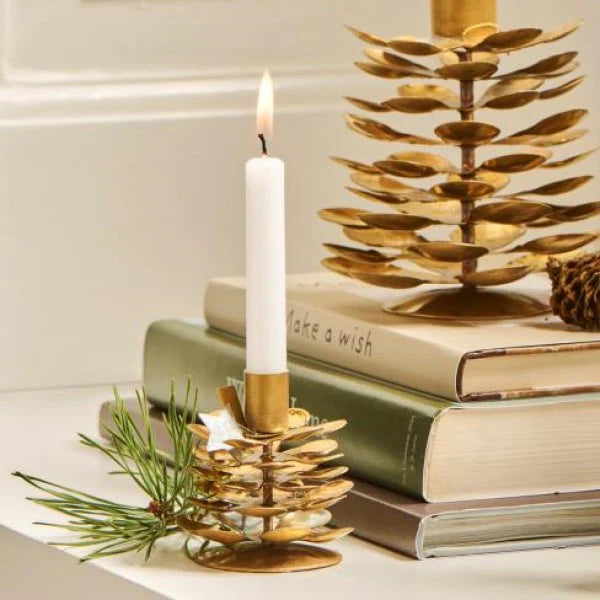 Lysestage fra Ib Laursen udformet som en kogle. Stagen er rund, og passer til et kertelys med en Ø på 1,3 cm. Stagen er fin at stille på en bakke med andet julepynt, eller langs en flot dækket bord.