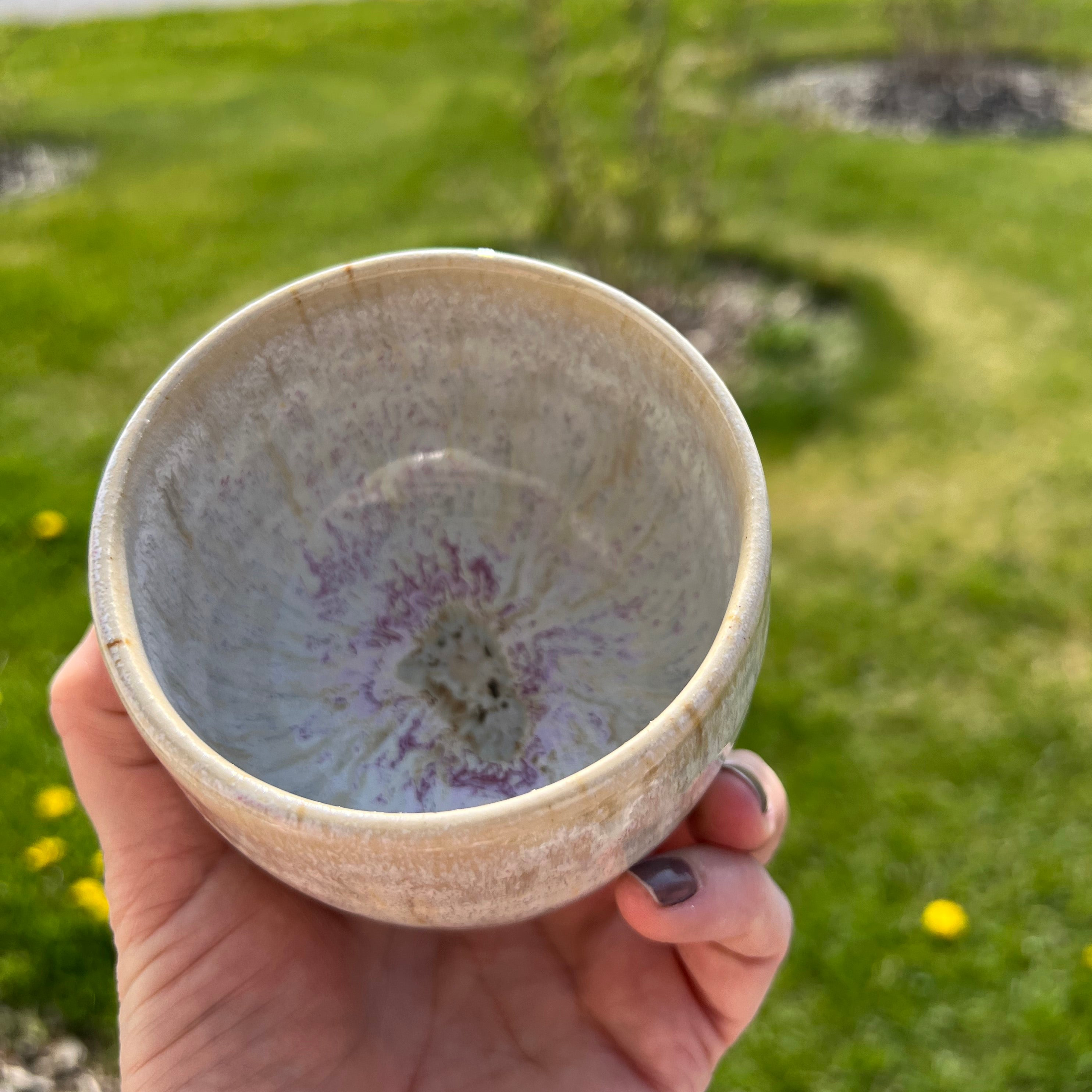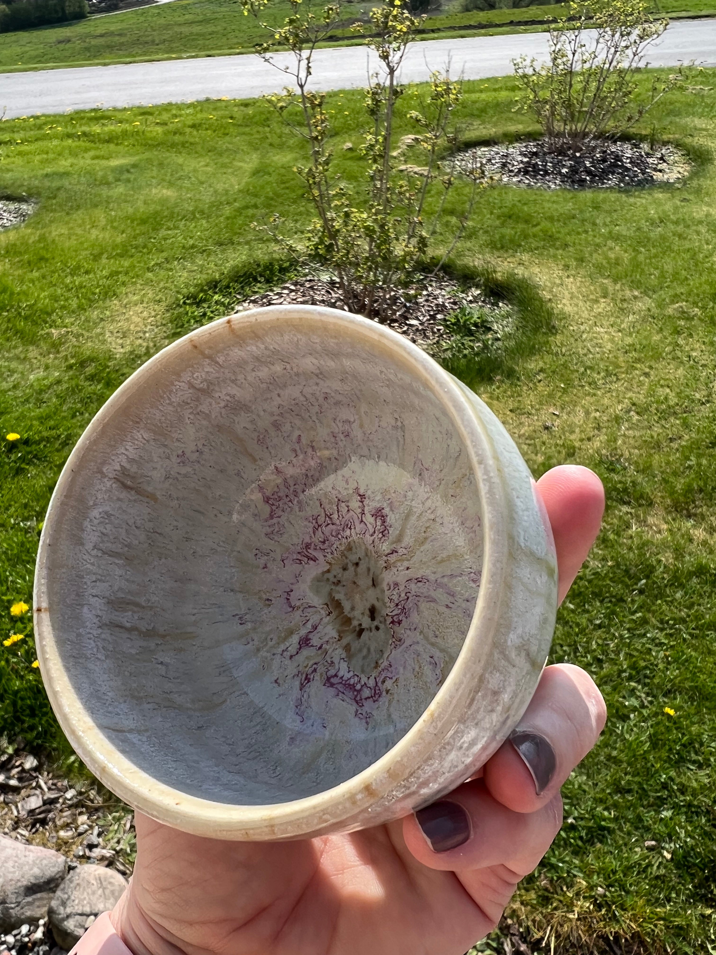 Smuk håndlavet keramik krus fra Keramikeren Handmade by Victoria Juul. Kruset er i beige/råhvid farve, og inde i kruset er der et fint mønster.