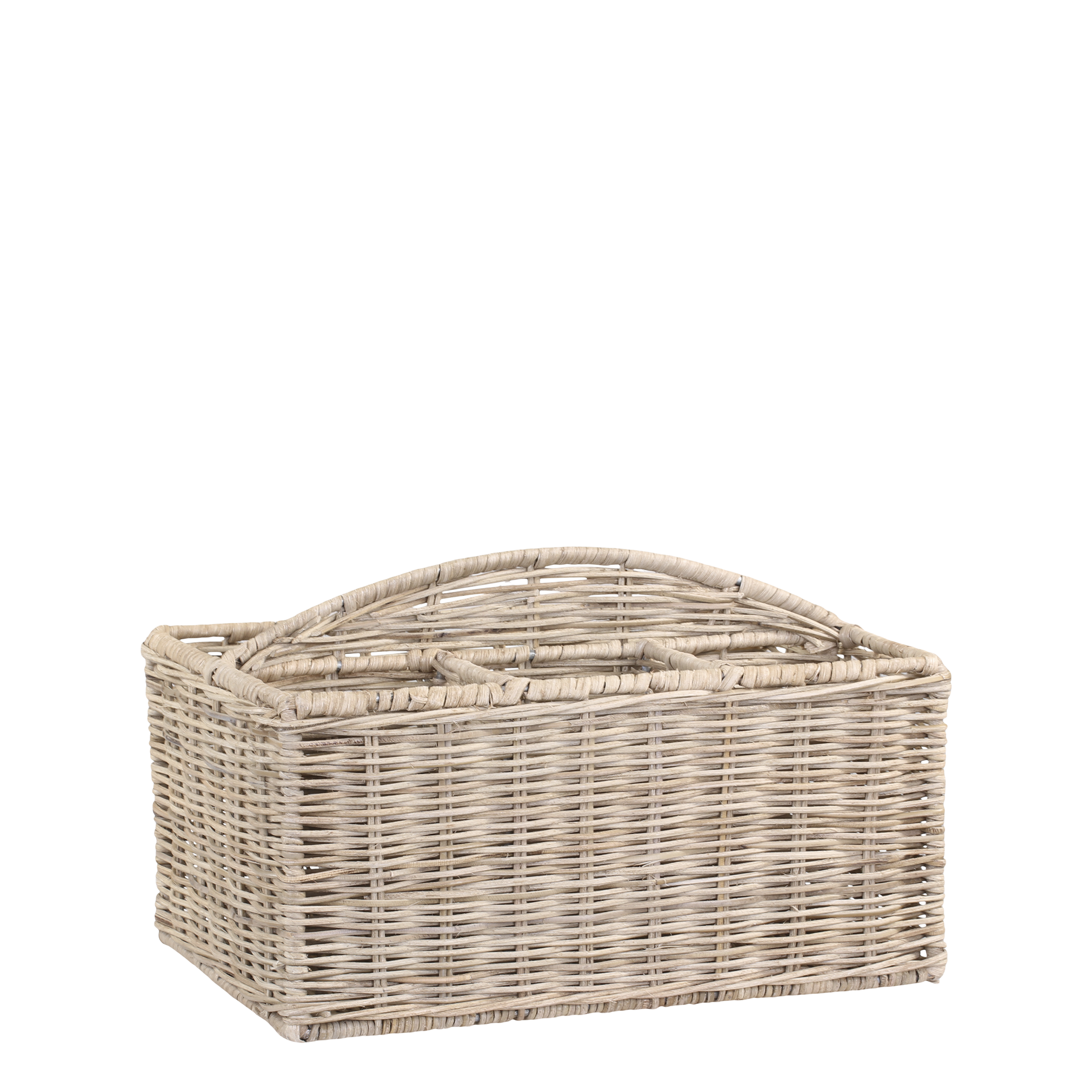 Flot flettet rattan kurv fra Chic Antique med rum til opbevaring. Der er fire rum, tre små og et stort. Kurven kan bla. bruges i køkkenet til opbevaring af bestik, servietter osv., på badeværelset, eller på kontoret. Smuk, anvendelig og dekorativ kurv.