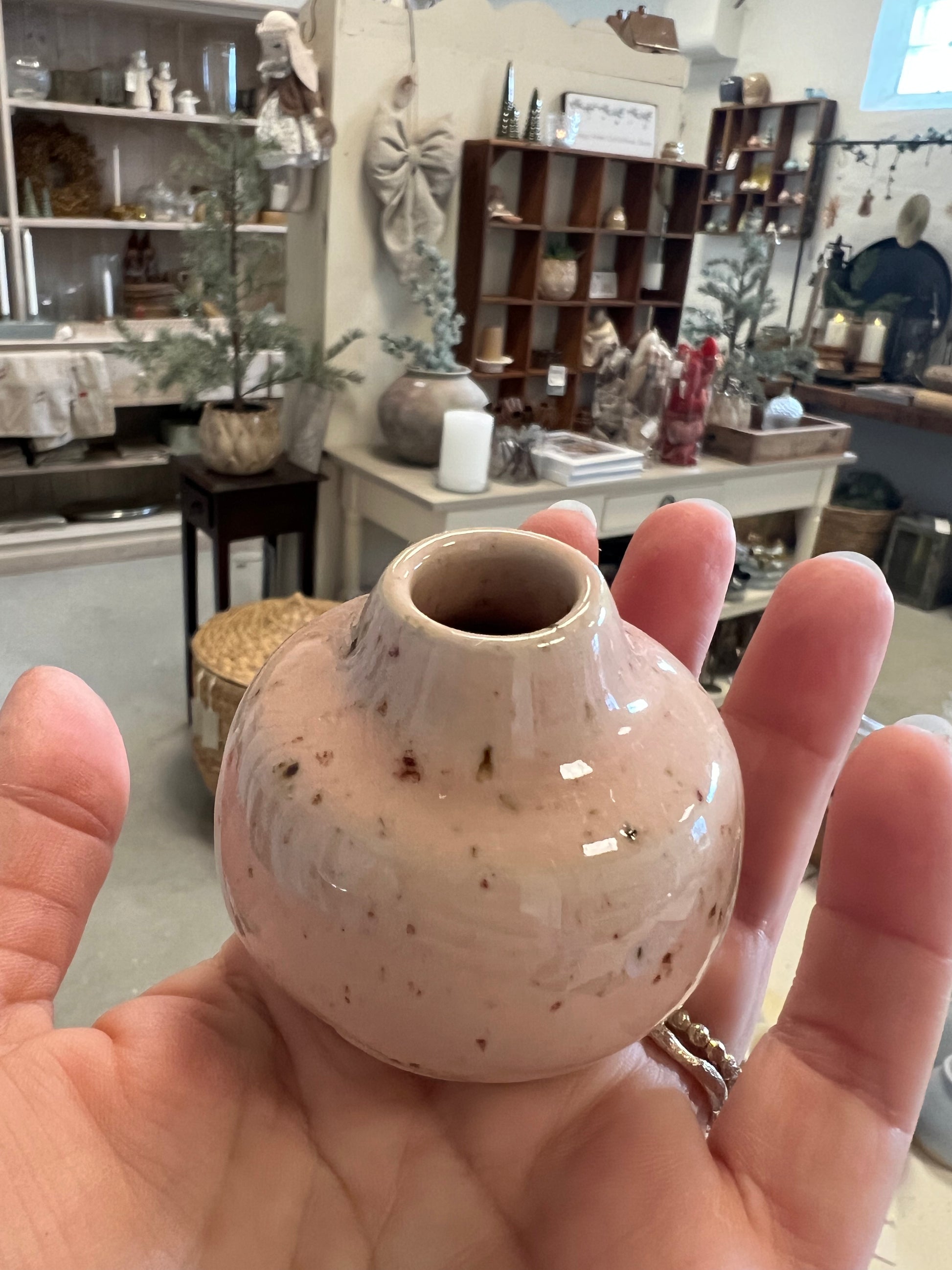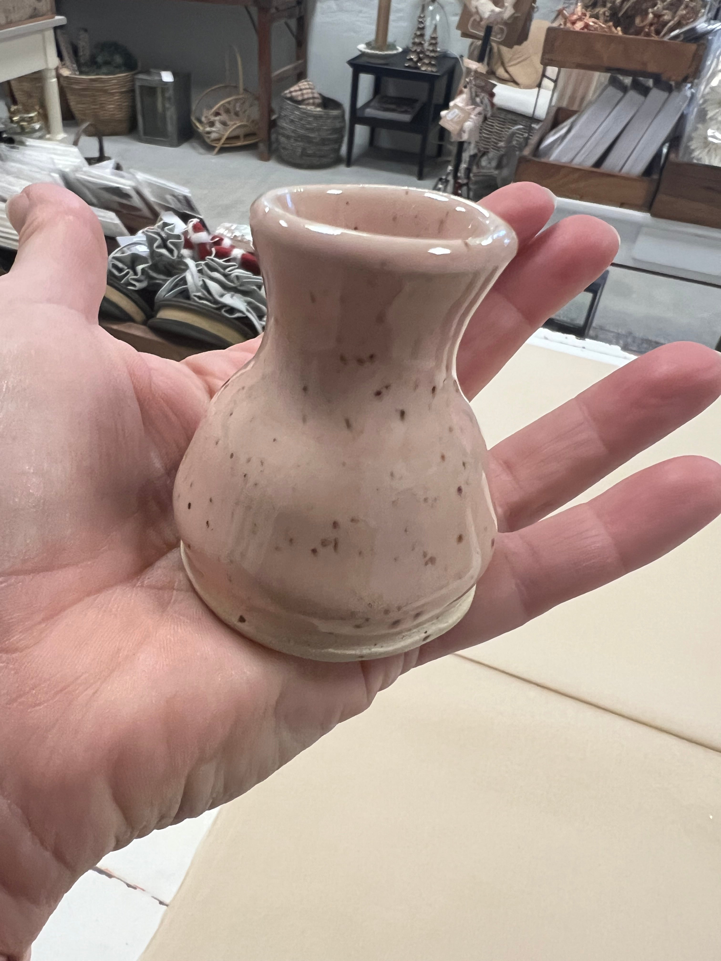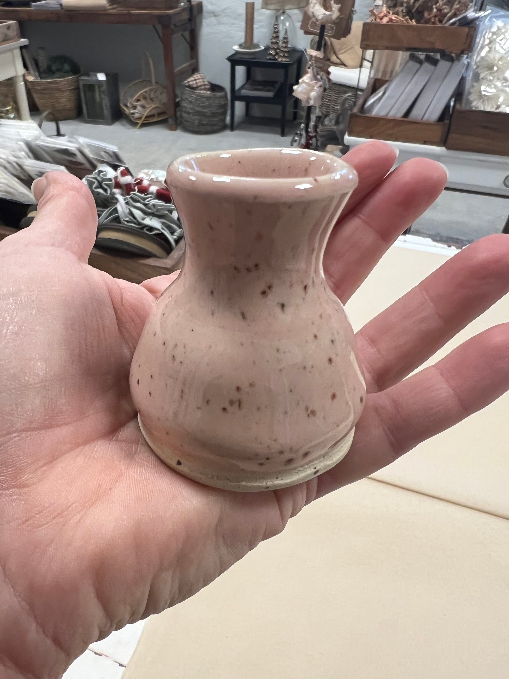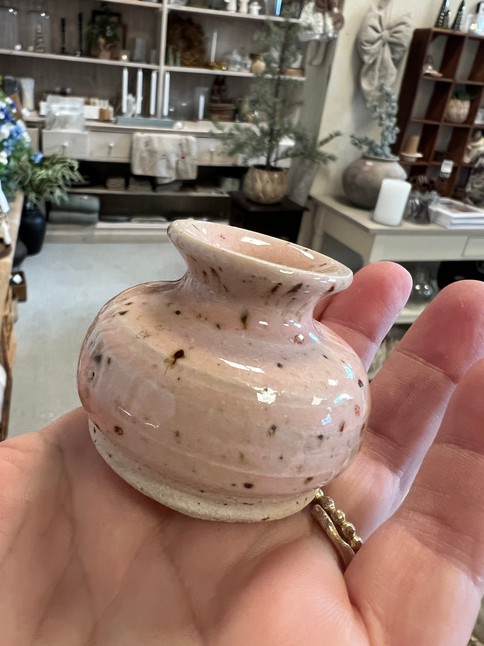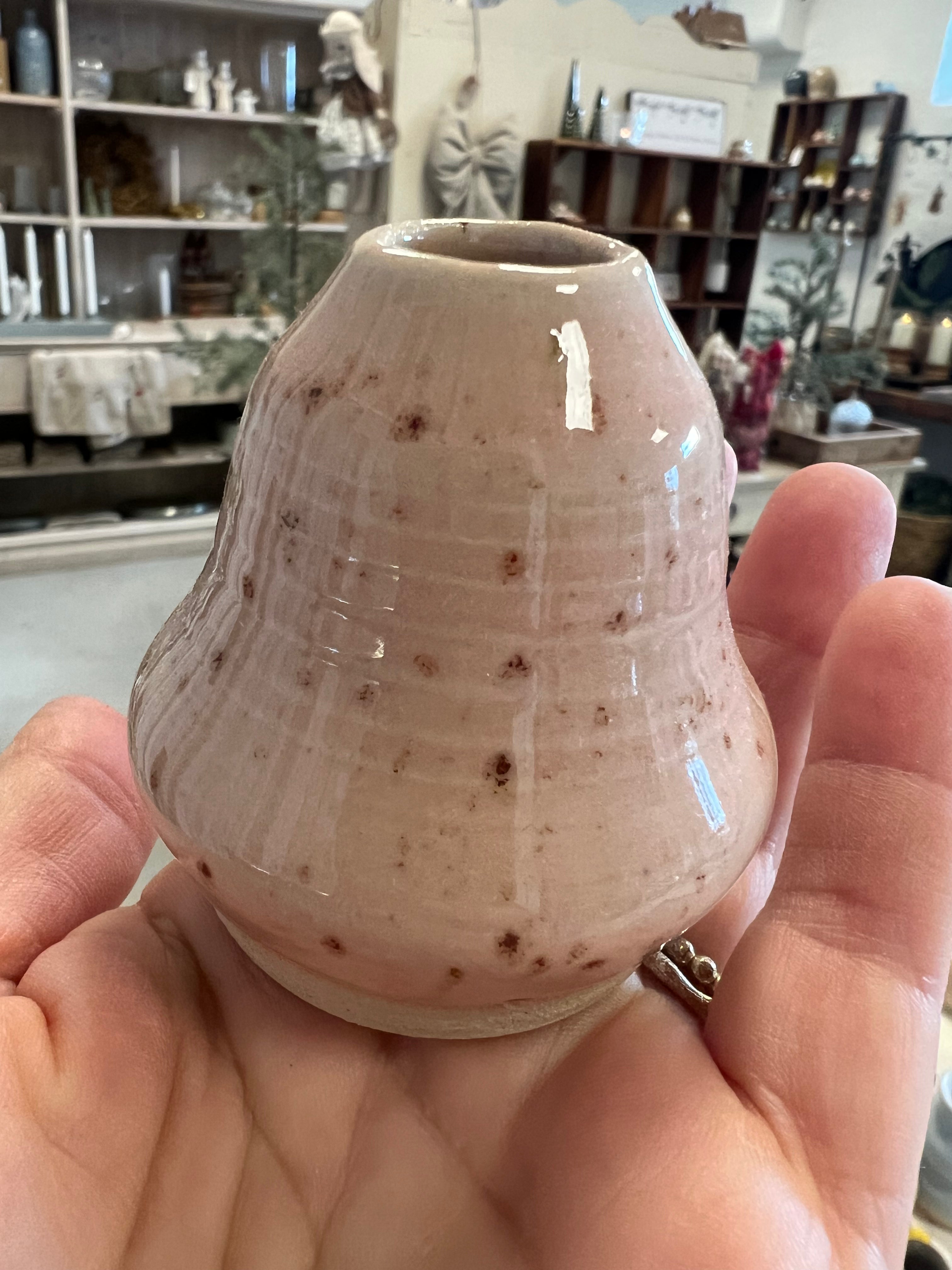 Lille håndlavet keramik vase i lyserød. Vasen har en blank overflade. Findes i flere varianter