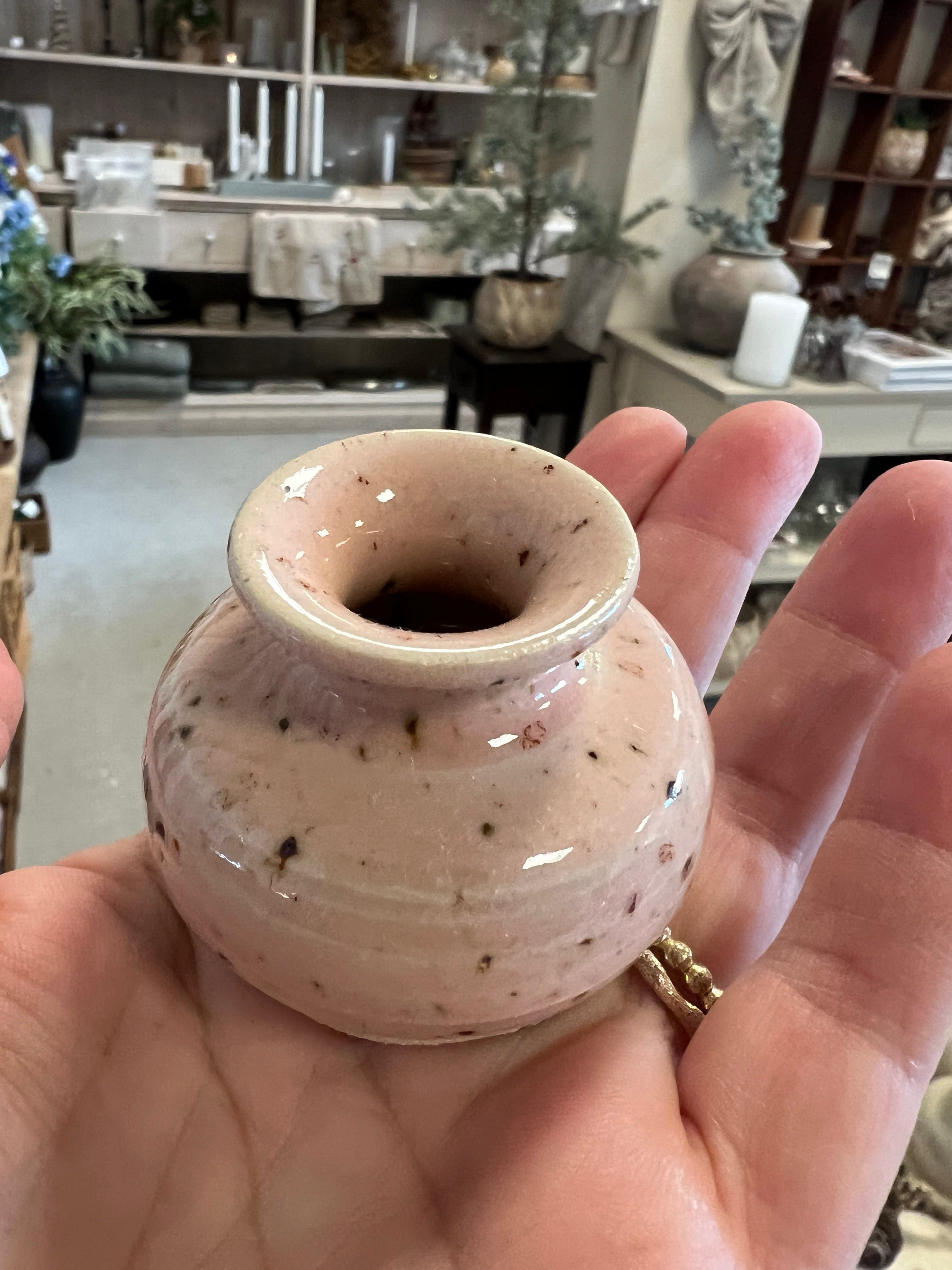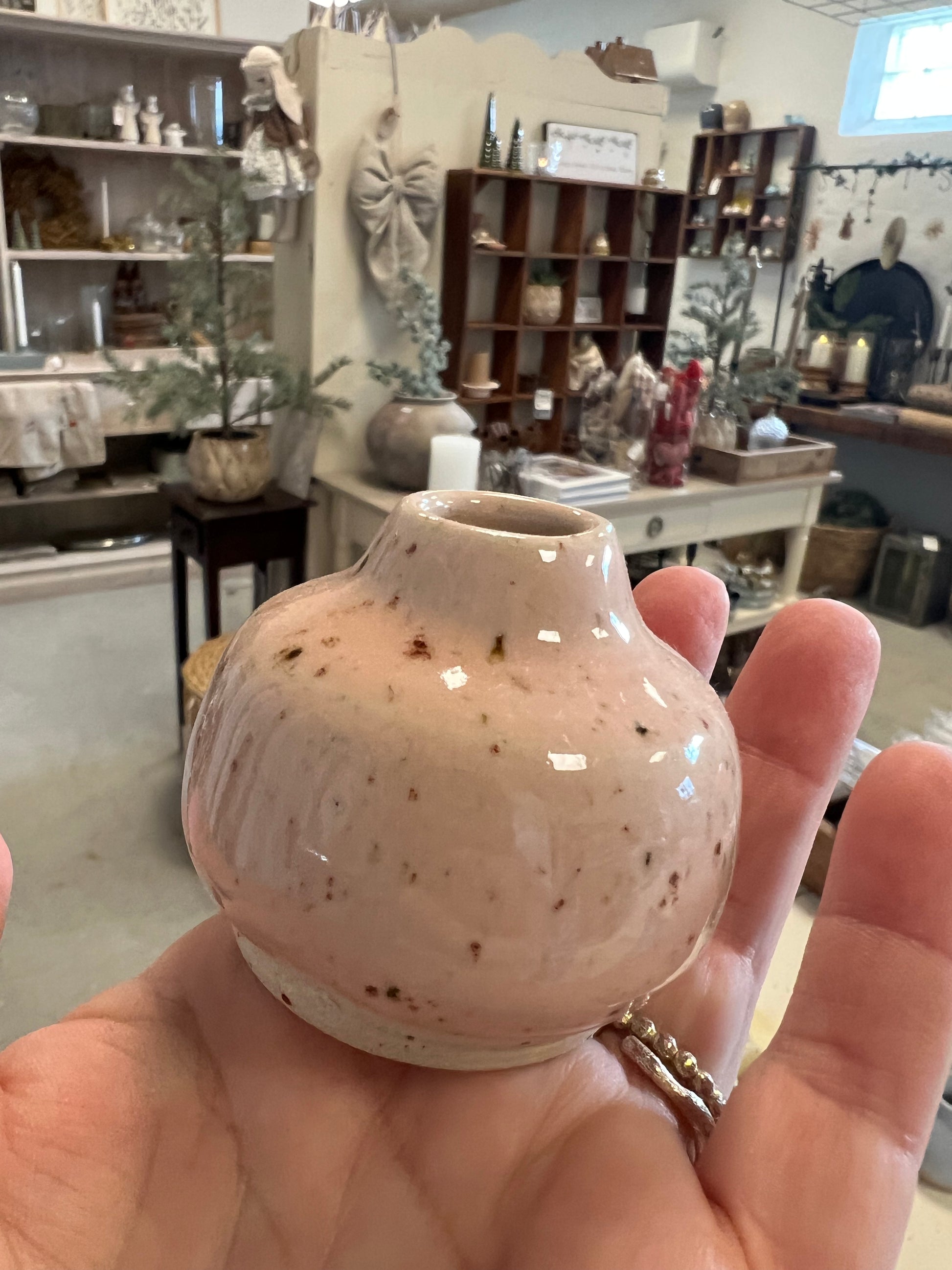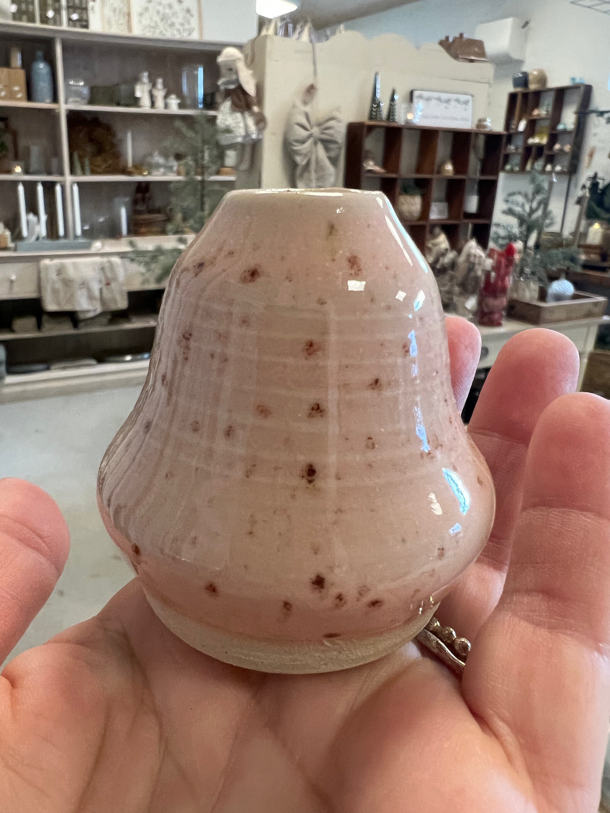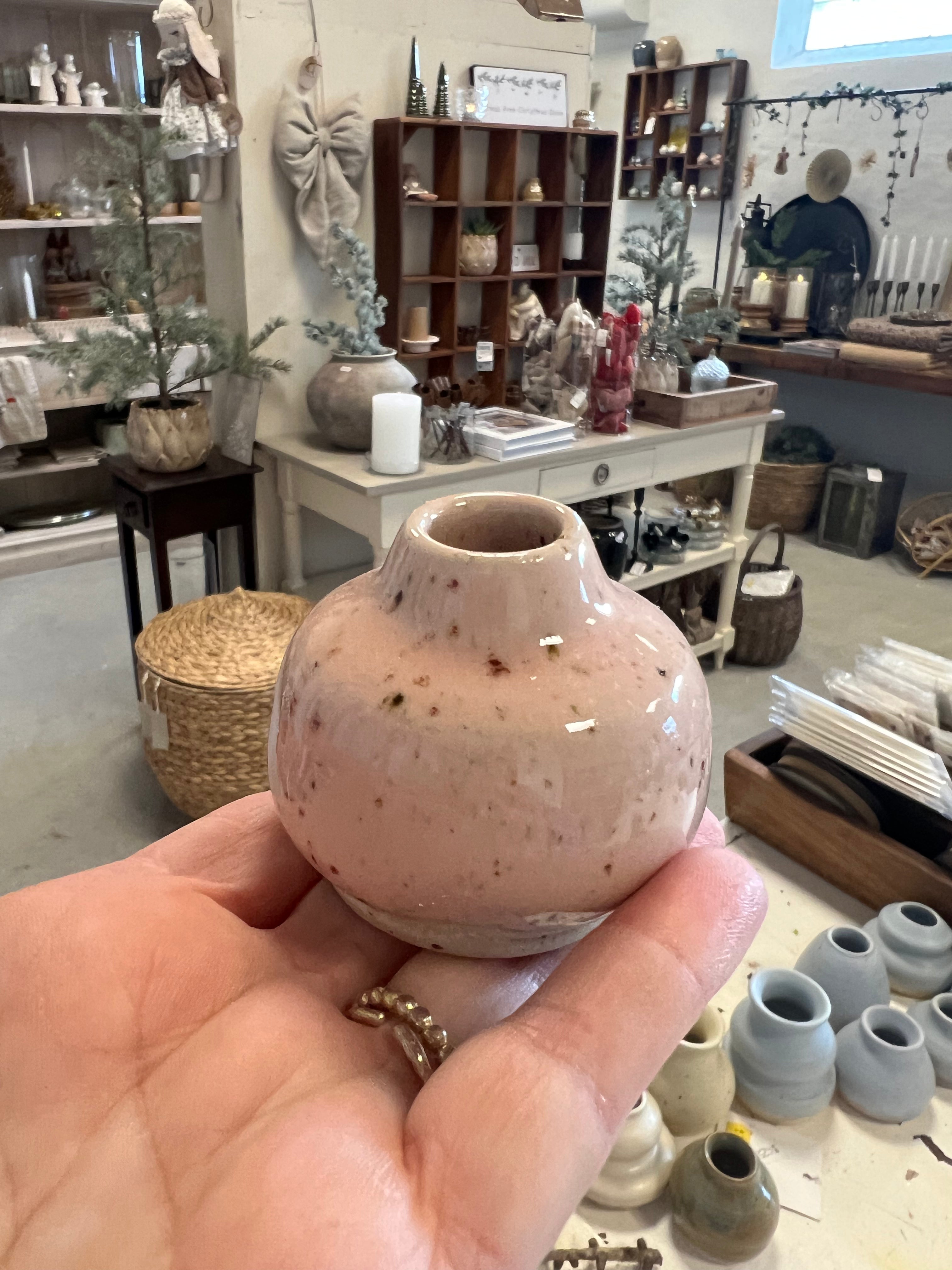 Lille håndlavet keramik vase i lyserød. Vasen har en blank overflade. Findes i flere varianter