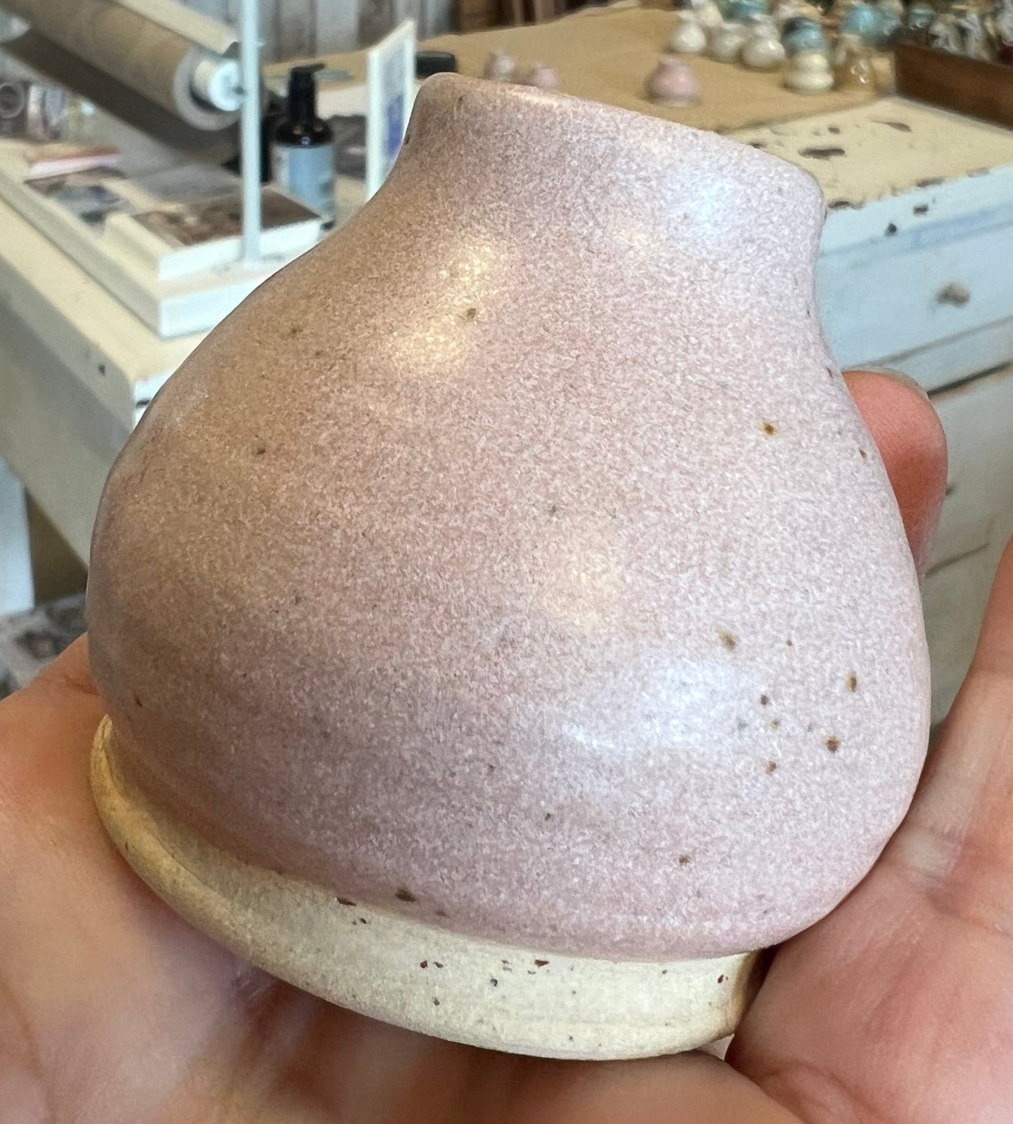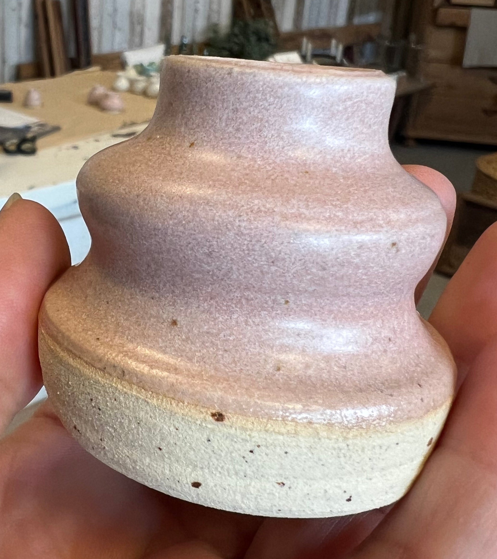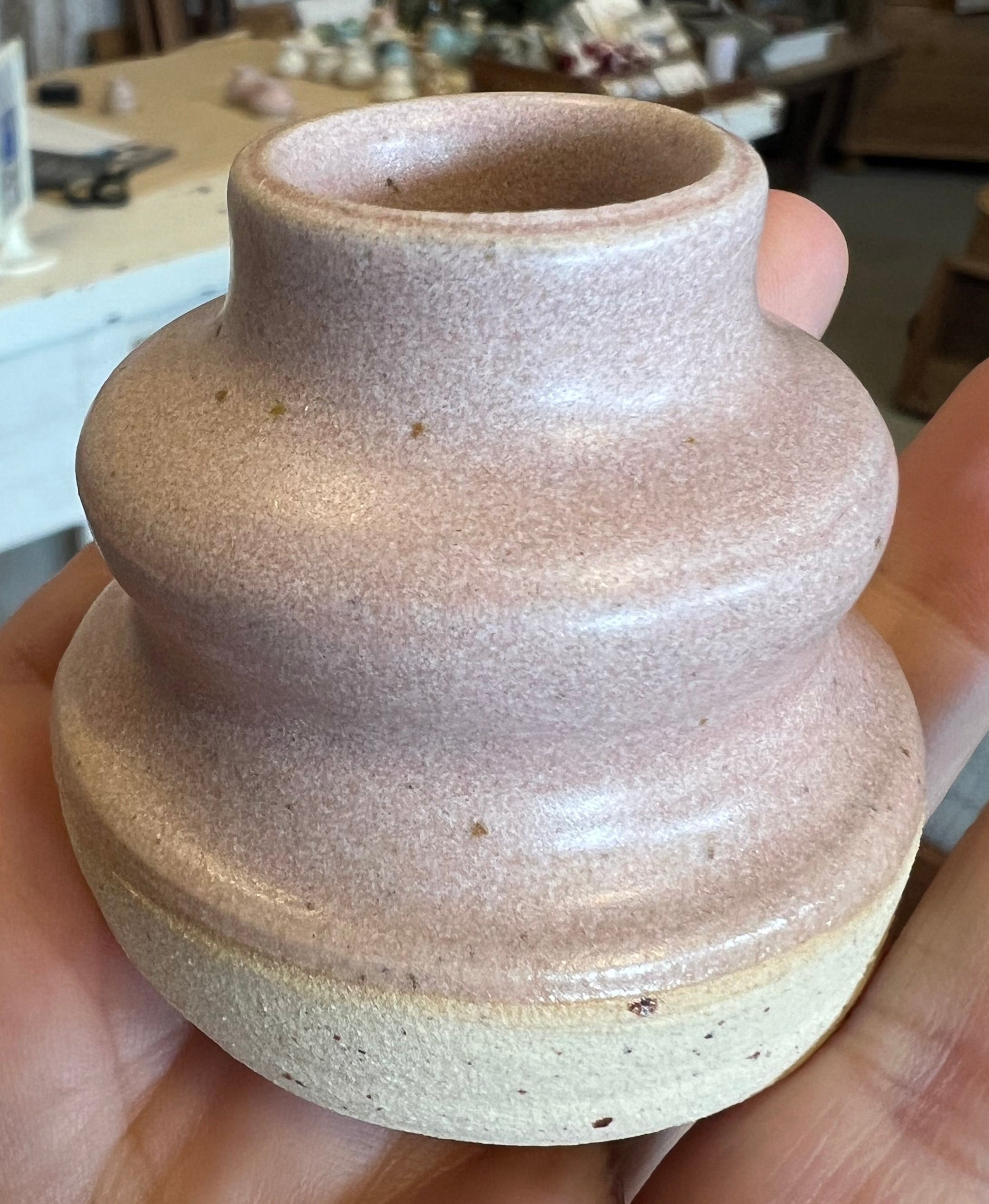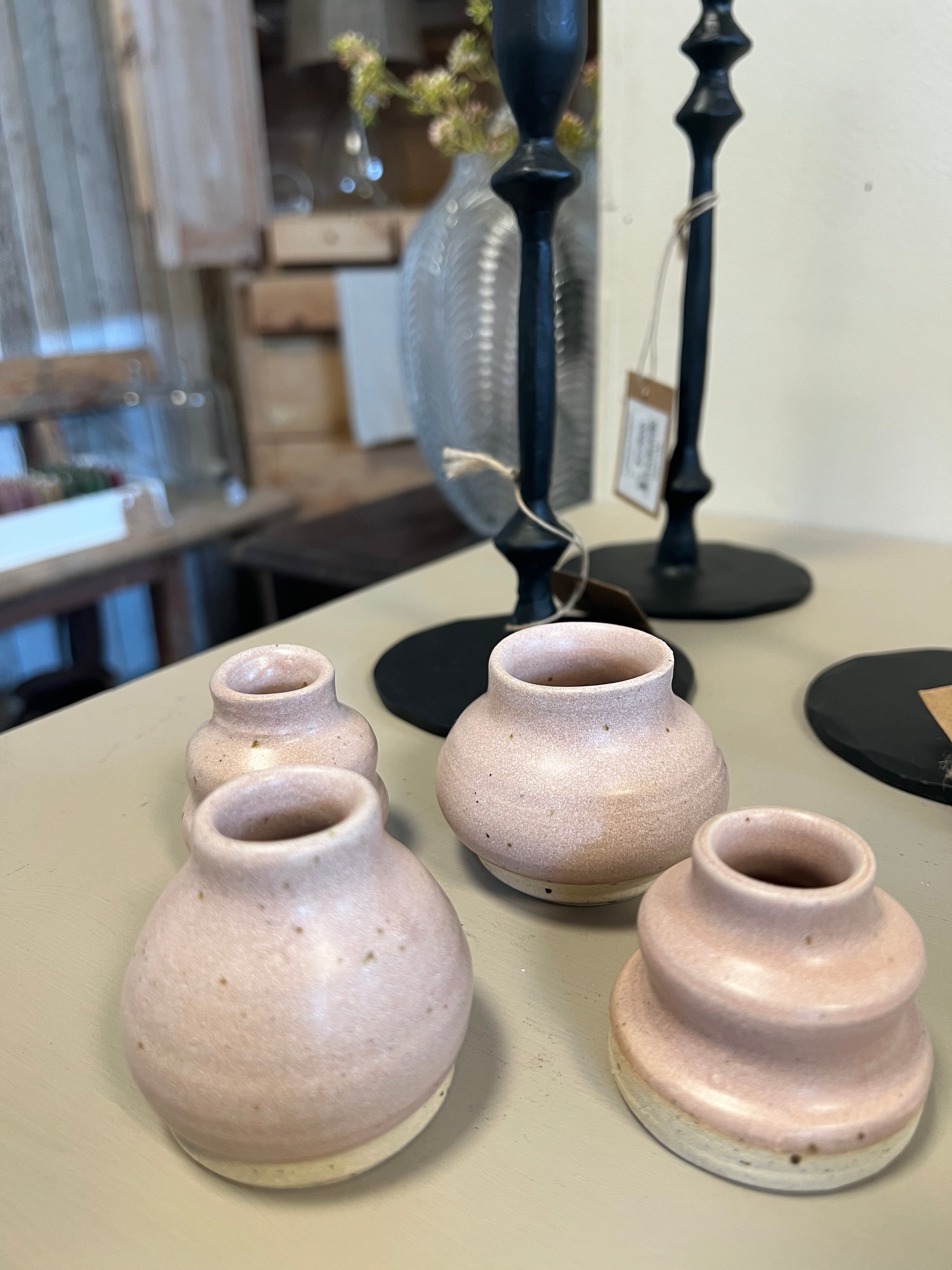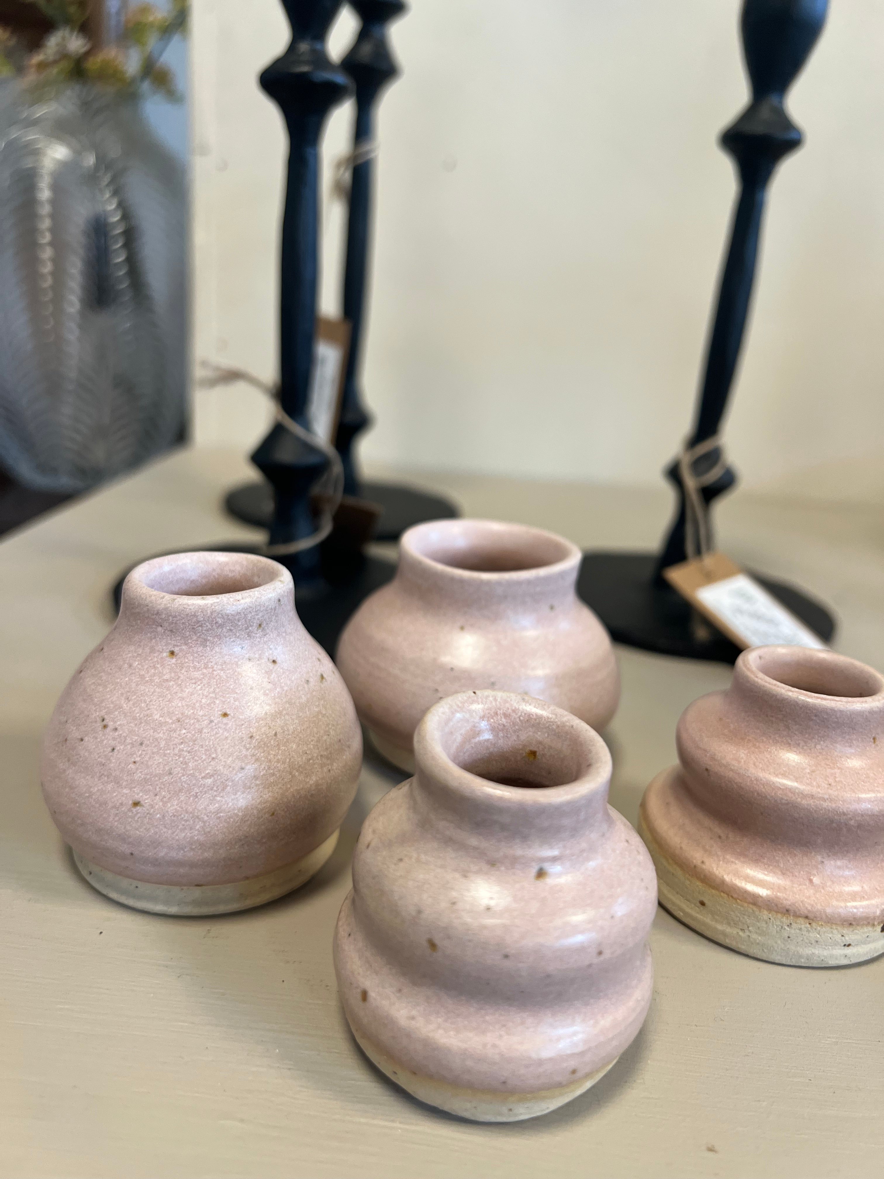 Lille håndlavet keramik vaser i rosa farvet. Vaserne har en mat overflade.