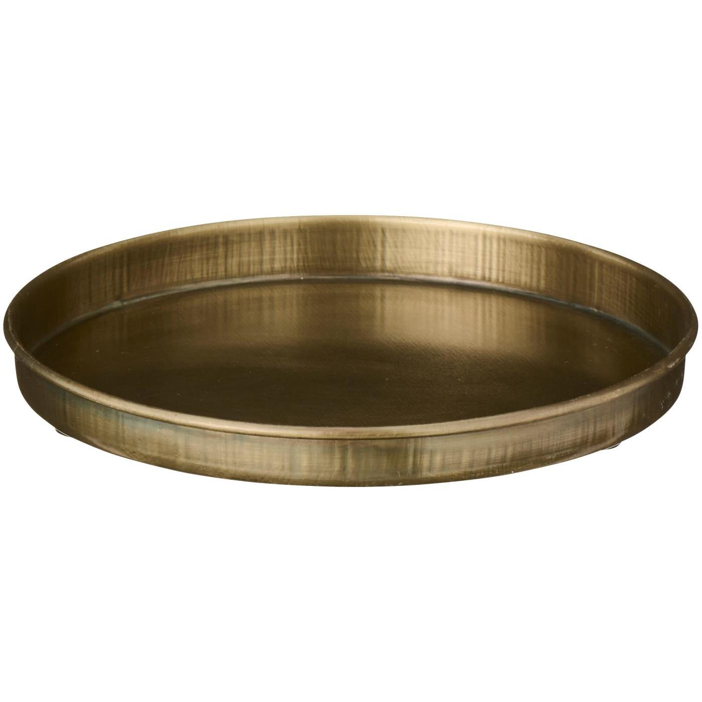 Rund lysbakke i metal med kant i farven antique messing fra Ib Laursen.