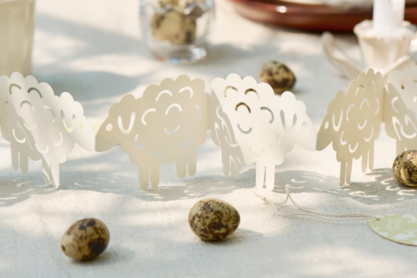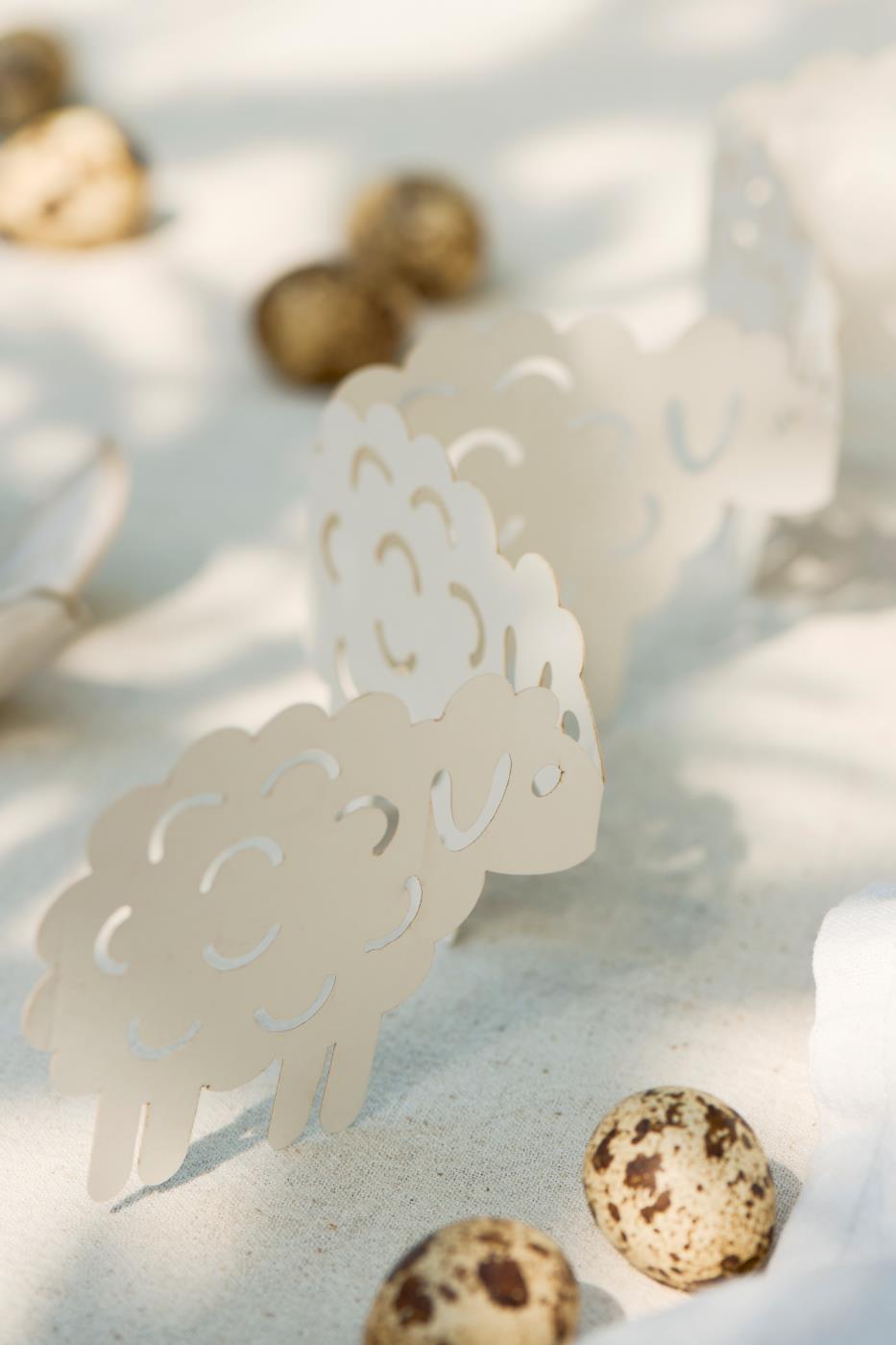 Dette fine papirklip med lam eller harer er perfekt som bordpynt til påskebordet. Papirklippet er lavet i et praktisk 'fold ud'-design, som tilføjer papirklippet en hyggelig og festlig stemning på påskebordet. Kan også være fin at pynte med på en hylde, eller i vindueskarmen.