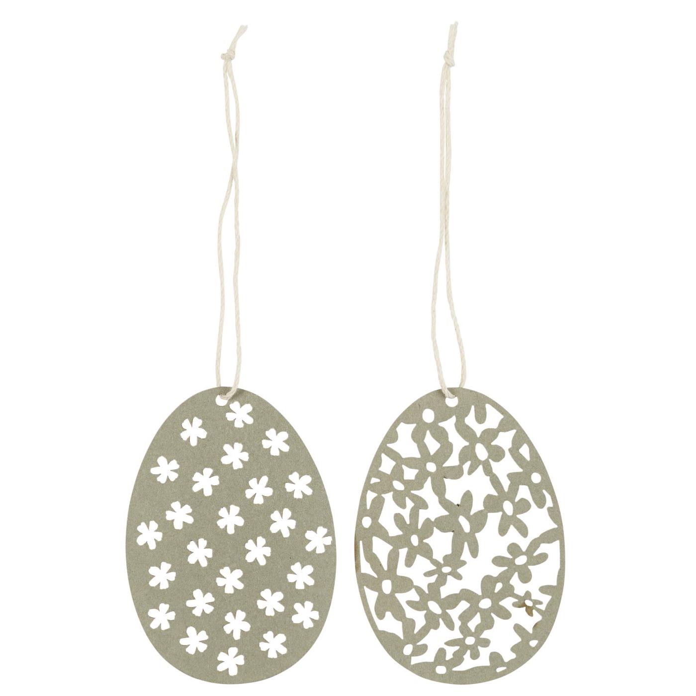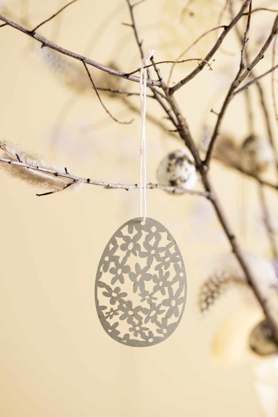 Smukke påskeæg i grå papirklip fra Ib Laursen. Papirklip er en fin og elegant måde at få fint pyntet op til påske. Sæt æggene på en forårsgren i en vase, eller hæng dem i vinduet. Der er to forskellige motiver, og der er én af hver i et sæt.