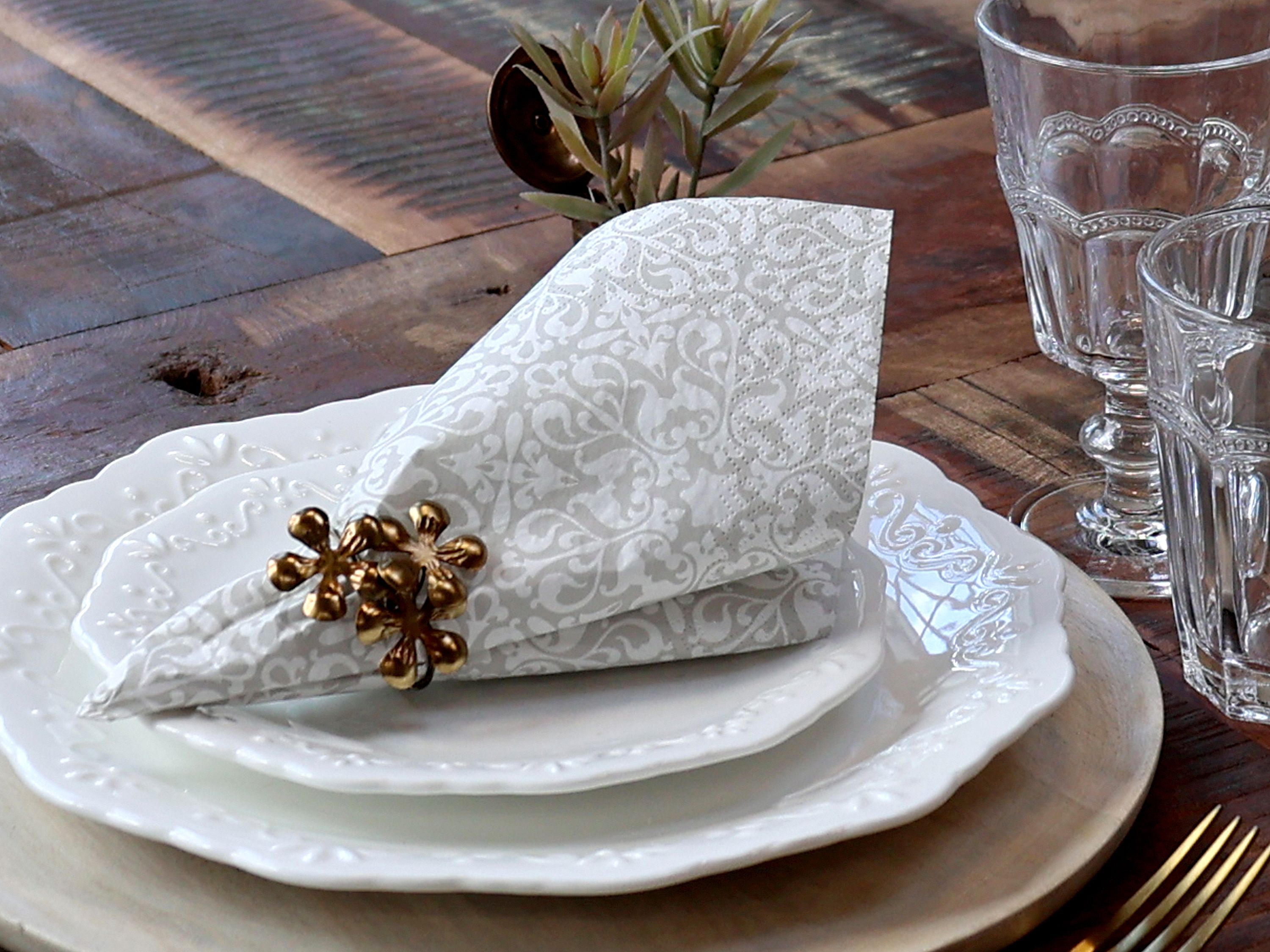 Smukke papir servietter fra Chic Antique med mønster som findes i to flotte farver, fransk grå eller hør farvet. Servietten er i 3 lag, og der er 20 stk. servietter i en pakke.