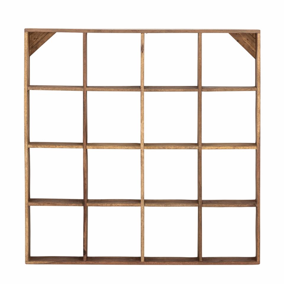 Tilo Hylden fra Bloomingville er en smuk hylde lavet af genanvendt træ, der giver en unik og rustik charme til ethvert rum. Brug den som en bogreol til at opbevare dine yndlingsbøger, eller som en hylde til at vise dine kopper, og køkkengrej i køkkenet eller brug det til nips og mindre genstande i stuen. Denne alsidige og stilfulde hylde vil tilføje et strejf af varme og hygge til dit hjem. Hylden er inddelt i 16 rum.