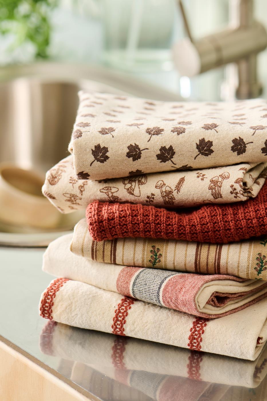 Fint og dekorativt viskestykke med natur farvet bund, og brune blade. Viskestykket er fra Ib Laursen og har en hank så det kan hænges op. Viskestykke i 100% bomuld med god sugeevne og slidstærk kvalitet – et praktisk og dekorativt valg til dit køkken. Også en sød værtindegave. Anbefalet vask ved 40 grader.