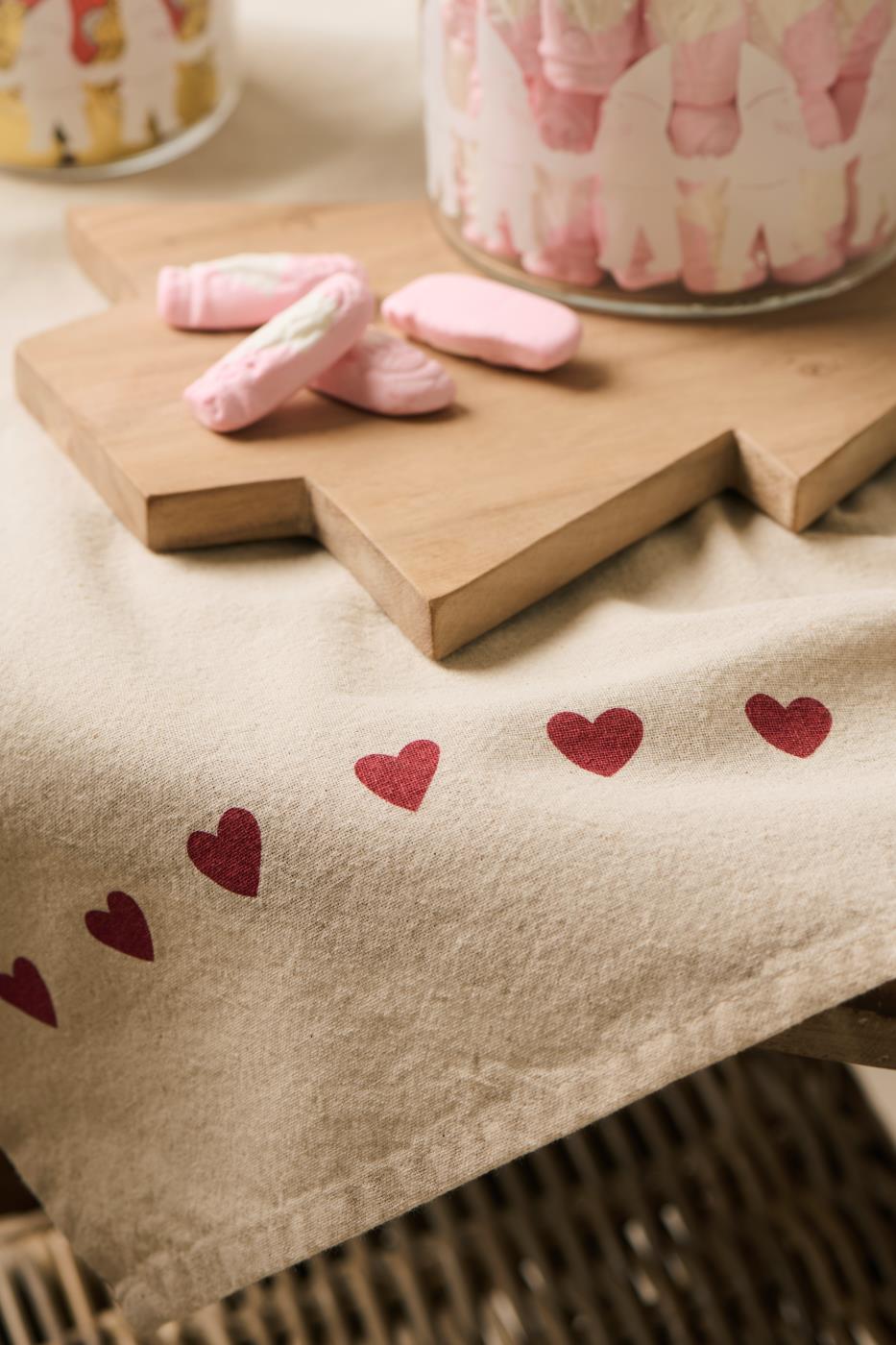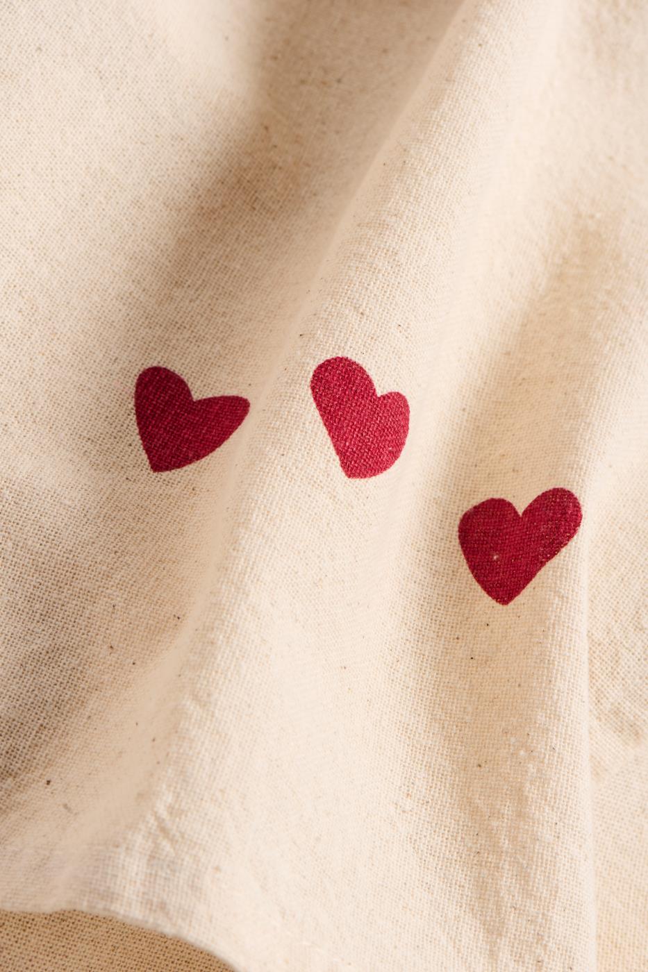Smukt juleviskestykke som er natur farvet og med røde julehjerter fra Ib Laursen. Viskestykket her god sugeevne. Et viskestykke som kan skabe den helt rigtige julestemning i dit køkken, eller brug det som en bæredygtig alternativ til gavepapiret, og pak dine julegaver ind i det.